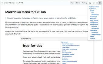 Overall, Markdown Menu for GitHub is a helpful Chrome extension that enhances the navigation experience for GitHub READMEs and Markdown documents. Its simple and intuitive interface makes it easy for users to find and access specific sections within these documents.